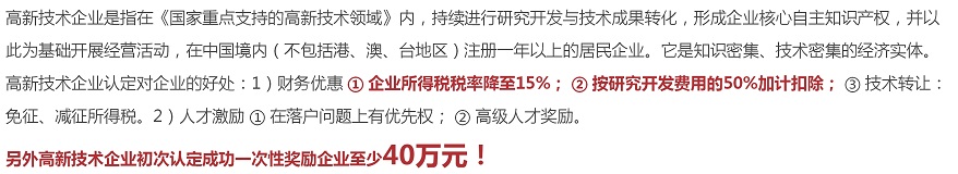 4、科研用房500平方米以上,科研資產(chǎn)總額500萬(wàn)元以上(軟件類企業(yè)300萬(wàn)元以上)。