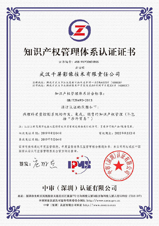 熱烈祝賀武漢千屏影像技術(shù)有限責(zé)任公司于2019年9月獲得知識產(chǎn)權(quán)貫標(biāo)認(rèn)證證書,公司在知識產(chǎn)權(quán)管理體系的建立、實施工作中取得階段性成果,意味著公司知識產(chǎn)權(quán)的規(guī)范進(jìn)入常態(tài)化。